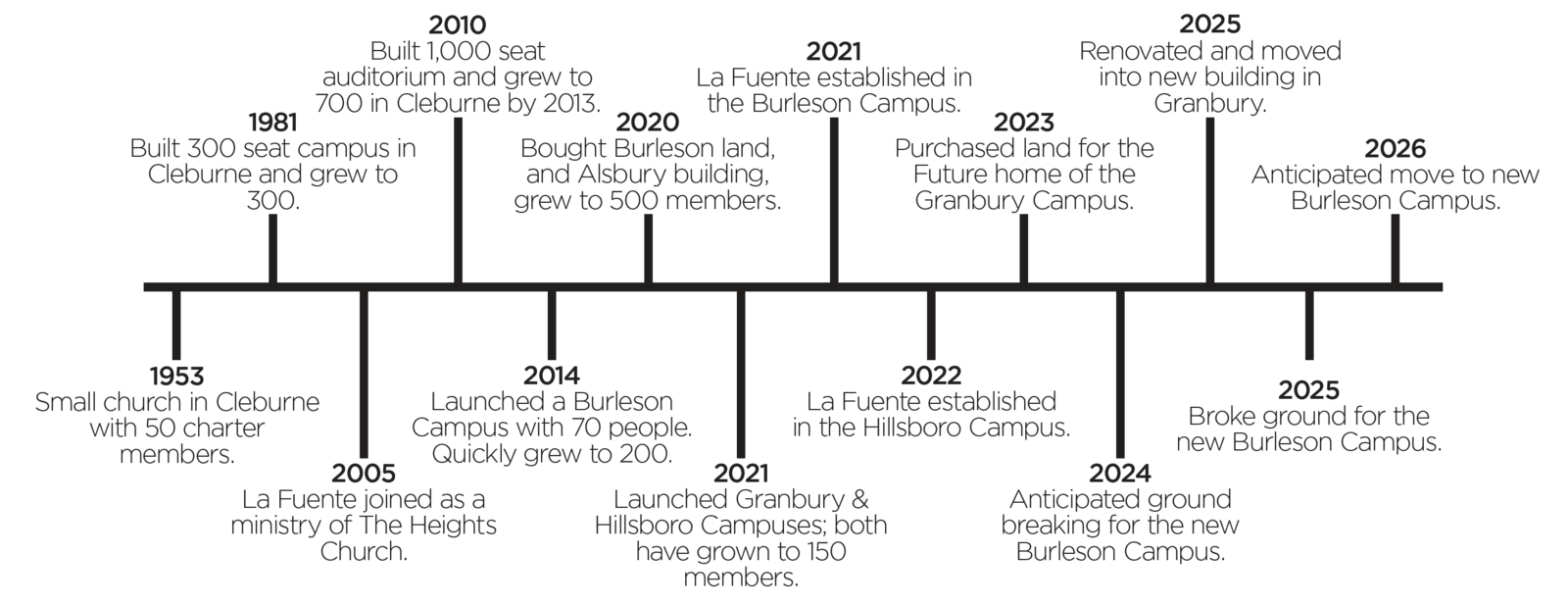 Our current home in Burleson has been serving the community since 2020. We have three worship services that see a combined attendance of 600 people. Our family is growing every day and we look forward to this new season of growth.